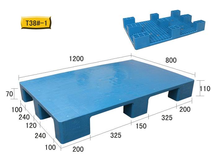 產(chǎn)品型號(hào): HD-1208JP1 產(chǎn)品貨號(hào): T38#-1 產(chǎn)品外尺寸: 1200×800×110 產(chǎn)品內(nèi)尺寸: 產(chǎn)品結(jié)構(gòu): 平板九腳 產(chǎn)品內(nèi)容量(L): 承重量(T): 動(dòng)載:1T 靜載:4T 貨架:X 產(chǎn)品認(rèn)可標(biāo)準(zhǔn): ISO9001:2000質(zhì)量體系認(rèn)證 此款塑料托盤(pán)適用平地墊倉(cāng)使用,防潮效果好,且易于清洗;